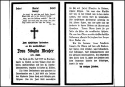 Starb an Folgen eines Unfalls; Eltern: Peter Koch u. Sibylla geb. Hilgers; ∞ 24.6.1922 Josef Meuser in Belmen, Pfarre Elfgen; |