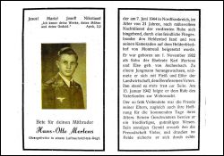 Gefallener 2. Weltkrieg; Heldenfriedhof v. Montreuil; Eltern: Karl Mertens u. Else geb. von Aschenbach; Landwirtschaft; Einberufung zur Wehrmacht 15.1.1942 |
