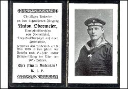 Gefallener 1. Weltkrieg; Plumpfmüllerssohn von Obermühltal; Torpedo-Oberheizer auf einer Halbflottille |