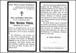 ∞ 12.8.1883 Matthias Bückem, † 1918; 7 K., davon 1 Sohn mit 24 J. †; |