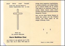 Aus Urfeld; Tod durch Unglücksfall; verlobt mit Margarete Franzen; Exequien und Beerdigung in Urfeld |