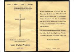 Aus Urfeld; Eltern: Josef Prechtel u. Mathilde geb. Bossinger; Exequien und Beerdigung in Urfeld |