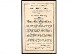 Fast 70 J.; langwieirge Krankheit: Asthma; ∞ Franz Ophaelders, † 1841; 1 überlebender Sohn; Pfarrgemeinde St. Nikolaus |