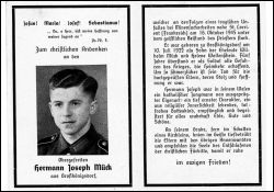 Gefallener 2. Weltkrieg; Tod bei Minensucharbeit (Kriegsgefangenschaft); Eltern: Wilhelm Mück u. Helene geb. Wollenschein |