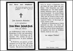 ∞ 10.7.1903 Joseph Peck, † 6.5.1943; 2 K.; schweres, mehrwöchiges Krankenlager |