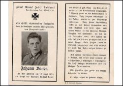 Gefallener 2. Weltkrieg; Eltern: Michael Bauer u. Elisabeth geb. Graf; Druck in Frechen |