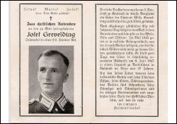 Opfer 2. Weltkrieg; Eltern: Wilhelm Grevelding u. Katharina geb. Klein; ∞ Johanna Vogt; 2 Söhne; Mai 1945 in russische Gefangenschaft; |