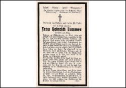 ∞ 21.10.1903 Heinrich Tummer aus Viersen; 1 Sohn; Tod durch Herzschlag; sie starb in der Wohnung ihres priesterlichen Sohnes |