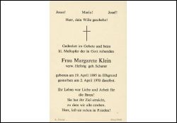 Klein, geb. Scherer, verw. Heftrig | Vorname: |