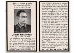 Gefallener 2. Weltkrieg; Eltern: Josef Weitzenbürger u. Maria Franziska Wegmann; Einberufung zur Wehrmacht Okt. 1937; nahm am Einmarsch ins Sudentenland u. Feldzügen gegen Polen u. Frankreich teil, schließlich an russische Front; ∞ 24.10.1942 Katharina Welter aus Grefrath; Ehrenfriedhof in Koschelewo |