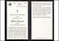 Gefallener 2. Weltkrieg; beim Baden ertrunken; 2.10.1940 Einberufung zur Wehrmacht; Eltern: Wilhelm Odenell u. Josefine geb. Müller |