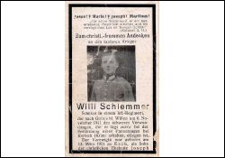 Totenzettel unvollständig; Gefallener 2. Weltkrieg; Eltern: Eheleute Joseph Schlemmer UND Katharina geb. Beyer |