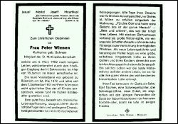 Langes Leiden; Mitgl. St. Matthiasbruderschaft; ∞ 7.9.1901 Peter Wienen; 11 K., davon 5 früh †; Druck in Büderich |