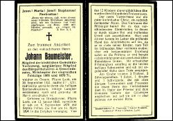 Mitgl. Kirchl. Gemeindevertretung, Bürgermeisterei- u. Gemeinderat; Mitkämpfer 1866 und 1870/71; Lungenentzündung; ∞ 6.9.1879 Sophia Pöllen, † 14.3.1896; 12 K., davon 10 †; |