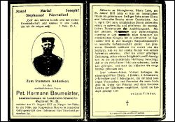 Gefallener 1. Weltkrieg; † in russ. Kriegsgefangenschaft; 1.4.1916 Einberufung; im Sept. 1916 b. Karpathenkämpfen in russ. Gefangenschaft |