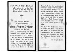 ∞ 10.9.1888 Kaspar Poischen; 2 K.; mehr als 50 J. Ehe; längere, schmerzhafte Krankheit |