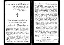 ∞ 14.6.1896 Maria Piepers, † 27.1.1921; 8 K., davon 5 †; durch furchtbare Unglücksfälle starben kurz hintereinenader eine Tochter und die Gattin; langwieriges Leiden |