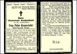 ∞ 22.4.1884 Peter Baumeister; 13 K., davon 5 †; Druck in Kaarst |