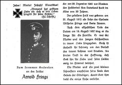 Gefallener 2. Weltkrieg: Eltern: Wilhelm Frings, † 18.8.1937, u. Berta geb. Stamm; zwei kleine Schwestern |