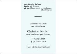Bender, geb. Gärtner, verw. Gußmann | Vorname: |