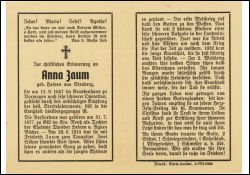 Wohnort Straberg; Eltern: Theodor Heinen u. Agnes geb. Böcker; † 28.6.1913 Friedrich Zaum; 2 Söhne; Ehemann Soldat im 1. Weltkrieg, sie musste allein die Landwirtschaft führen; seit 1932 lange Krtankheit, die sie fast ständig ans Bett fesselte |