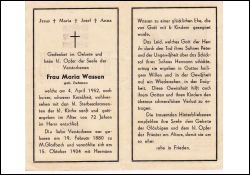 ∞ 15.10.1904 Hermann Wassen; 6 K.; Sohn Peter † (gefallen?); Sohn Hermann im 2. Weltkrieg vermisst |