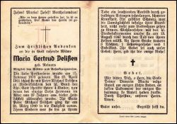 ∞ 23.4.1901 Peter Michael Delißen zu Niederkrüchten; 4 K., davon Sohn Hermann mit 27 J. †; langes Leiden |