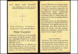 Eltern: Peter Hermann Cuypers u. Anna Margarethe In der D∞nen; lange Jahre Mitgl. Kirchenvorstand der Pfg. Elmpt; |