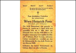 ∞ 8.5.1907 Heinrich Fretz, † 1932; 2 K. |