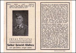 Gefallener 2. Weltkrieg; Eltern: Wilhelm Wolters u. Gertrud geb. Derix; mit Bruder u. Schwester früh Vollwaise; ∞ 12.4.1944 Gertrud Kersten; wenige Tage nach Hochzeit zur Front; am 10.11.1945 kam er in Gefangenenlager nach Jugoslawien; lettze Ruhe im Waldlager Krst; auch Bruder gefallen |
