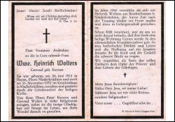 Eltern: Peter Kersten u. Gertrud geb. Waßen; ∞ 1943 Heinrich Wolters aus Boscherhausen b. Niederkrüchten; dieser kurz nach Trauung wieder zur Front, Gefangenschaft †; |