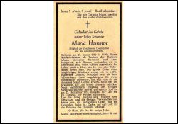 Mitgl. Jungfrauenkongregation; Eltern: Johann Cornelius Hommen u. Anna Margarete geb. B∞ms; langjährige Blindheit; |
