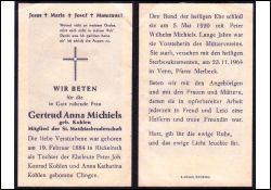 Mitgl. St. Matthiasbruderschaft; Eltern: Peter Johann Konrad Kohlen u. Anna Katharina Kohlen geb. Clingen; ∞ 5.5.1920 Peter Wilhelm Michiels; Vorsteherin des Müttervereins; |