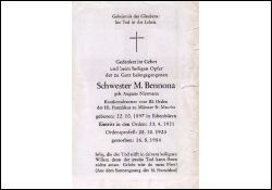 Bennona, Schwester M., geb. Niermann | Vorname: |