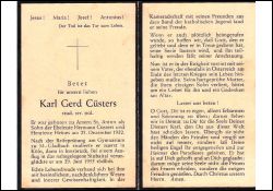Eltern: Hermann Cüsters u. Henriette geb. Heines; Student, zuerst in Köln, dann in Innsbruck; Mitgl. Bund der kath. Jugend; Vater war am Ende des 2. Weltkrieges in Österreich gefallen |