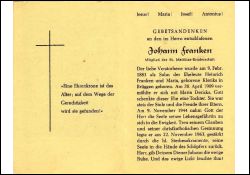 Eltern: Heinrich Franken u. Maria geb. Kleriks; Mitgl. St. Matthias-Bruderschaft; ∞ 20.4.1909 Maria Dericks, † 9.11.1944; 1 Tochter |