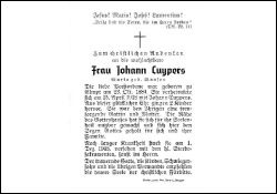 ∞ 15.4.1918 Johann Cuypers; 2 K.; lange Krankheit; Druck in Brüggen |
