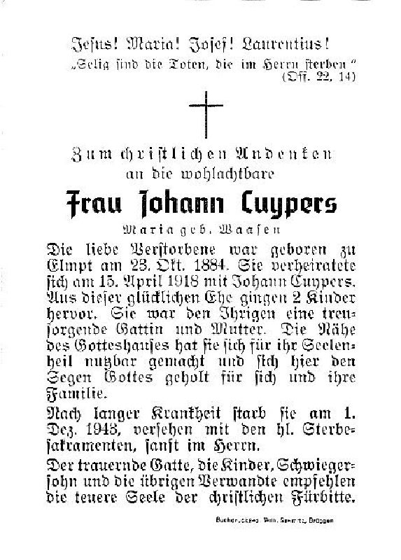 Cuypers, geb. Waasen | Vorname: |