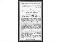 Eltern: Johann Heinrich Thyßen u. Anna Sophia geb. Ramakers; ∞ 15.4.1907 Anna Christine Schmitz; 5 K., davon Sohn Willi im 2. Weltkrieg gefallen; Druck in Brüggen |