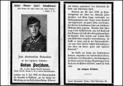 Gefallener 2. Weltkrieg; Eltern: Peter Porschen u. Anna geb. Lapp; 5 Jahre trug er den Soldatenrock. |