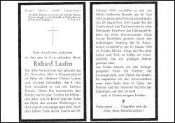 Eltern: Michael Laufen u. Gertrud geb. Derhecken; ∞ 9.5.1911 Barbara Bonsels, † 29.2.1923; 3 K., davon 1 Tochter mit 18 J. † u. 1 Sohn im 2. Weltkrieg gefallen; ∞ 30.5.1925 Sibilla Katharina Bonsels, † 29.9.1943 |