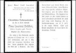 Mitgl. Mütterverein; ∞ 5.5.1895 Laurenz Delißen aus Elmpt; 9 K.; längeres Leiden |