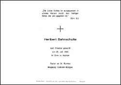 Priesterweihe 25.7.1953 in Aachen; Pfarrer an St. Rochus Wegberg/Dalheim-Rödgen; Seelsorger im Bethlehem-Krankenhaus; Ehrenpräses der Kolpingfamilie in Stolberg |