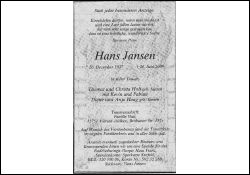 Töchter Christa u. Anja; Traueradresse: Viersen-Dülken; vermutl. gestorben im Bodelschwingh-Hospiz Haus Franz |