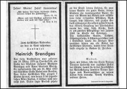 Landwirt; Eltern: Johann Mathias Brendges u. Anna Gertrud Weertz; ∞ 31.5.1910 Christine Sofie Nobel aus Neersen; 7 K., davon 2 jugendl. †; 3 Söhne im 2. Weltkrieg vermisst; lange, schwere Krankheit |