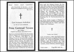 Mitgl. Frauen- u. Mütterverein; ∞ 14.10.1914 Johann Teven in Overhetfeld, † 1950; 2 K.; lebte im Haushalt einer Tochter |