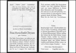 Eltern: Johann Michael Mertens u. Sibilla Catharina geb. M∞ren; ∞ 25.2.1924 zu Elmpt Franz Chrynen aus Merbeck, † 5.8.1941 |