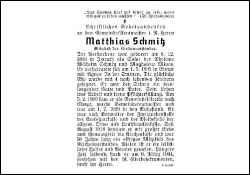 Gemeinde-Rentmeister i.R.; Mitgl. Kirchenvorstand; Eltern: Wilhelm Schmitz u. Magdalene Mives; ∞ 1.5.1895 in Elmpt Agnes In der Smitten; 4 K.; kam am 5.2.1889 als Gemeindesekretär nach Elmpt, wurde Gemeinderentmeister, 1.7.1929 Ruhestand; danach noch Verwalter der Zweignebenstelle der Kreissparkasse u. der Meldestelle der Orts- u. Landkrankenkasse; seit August 1918 betreute er die Kirchenkasse |