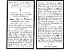 Mitgl. Kevelaer-Bruderschaft u.a.; ∞ 23.9.1902 Hermann Stefan Hillers aus Peel; 5 K., davon 1 Priester geworden und 1 früh †; Druck in Rheindahlen |
