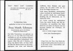 Mitgl. Mütterverein; ∞ 9.5.1914 Matthias Schreurs; 8 K., davon der älteste Sohn im 2. Weltkrieg gefallen; |